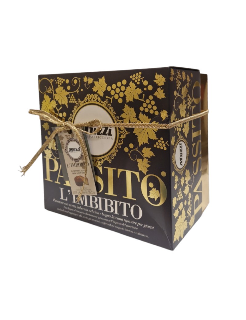 Prodotto dolciario da forno a lievitazione naturale con vino passito di Pantelleria D.O.C. e uvetta, con bagna al Passito di Pantelleria D.O.C. senza agrumi canditi.