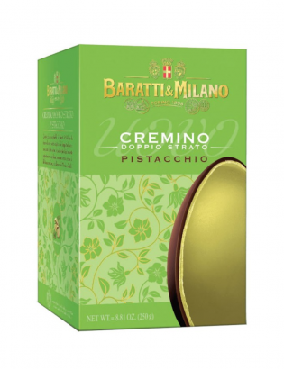 Questo delizioso gioiello di Baratti e Milano fa tesoro di una ricetta originale di lunga tradizione: uno strato esterno di finissimo cioccolato Gianduja sapientemente combinato con uno strato interno di deliziosa crema al pistacchio.