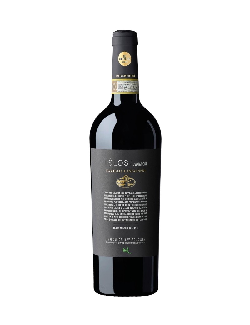 L'Amarone della linea Télos di Sant'Antonio nasce in vigneti situati in località Monti Garbi, nel comune veronese di Mezzane di Sotto. La produzione di questo vino non prevede l’aggiunta di solfiti.