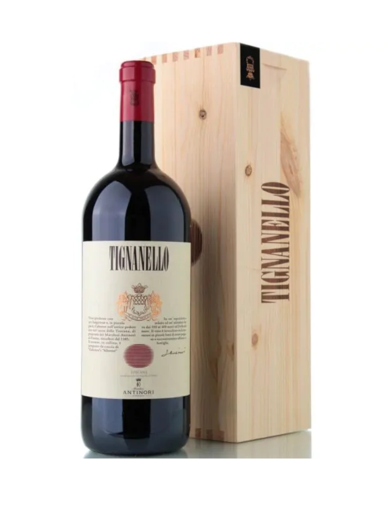 Durante il processo di fermentazione in serbatoi troncoconici, i mosti sono stati macerati con attenzione estrema alla freschezza dei profumi, all’estrazione del colore ed alla gestione dei tannini volta alla dolcezza ed all’eleganza. La svinatura è avvenuta solo dopo attente e giornaliere degustazioni. Una volta separate le bucce dal vino, è stata avviata la fermentazione malolattica in barrique, esaltando la finezza e la complessità degli aromi. É così iniziato il processo di affinamento della durata di circa 14-16 mesi, in fusti di rovere francese ed ungherese, in parte nuovi ed in parte di secondo passaggio. I diversi lotti, vinificati separatamente in base alla varietà, sono stati elevati in legno per poi essere assemblati pochi mesi prima dell’imbottigliamento. Il vino, prodotto prevalentemente con uve di Sangiovese ed una piccola parte di Cabernet Sauvignon e Cabernet Franc, ha affinato per ulteriori 12 mesi in bottiglia prima di essere presentato sul mercato. Tignanello è prodotto esclusivamente dall'omonimo vigneto che si trova presso Tenuta Tignanello su un terreno di 57 ettari esposto a sud-ovest, di origine calcarea con elementi tufacei, ad un'altezza tra i 350 e i 400 metri s.l.m.. È stato il primo Sangiovese ad essere affinato in barrique, il primo vino rosso moderno assemblato con varietà non tradizionali, quali il Cabernet, e tra i primi vini rossi nel Chianti a non usare uve bianche. Tignanello, in origine "Chianti Classico Riserva vigneto Tignanello" è stato vinificato per la prima volta da un unico vigneto con l'annata 1970, quando conteneva il 20% di Canaiolo e il 5% di Trebbiano e Malvasia, ed era affinato in piccole botti di rovere. Con l'annata 1971 è diventato vino da tavola di Toscana, è stato chiamato Tignanello e con l'annata 1975 le uve bianche sono state totalmente eliminate. Dal 1982 la composizione è rimasta invariata. Tignanello viene prodotto soltanto nelle annate migliori; non è stato prodotto nel 1972, 1973,1974, 1976, 1984, 1992 e 2002. Tignanello 2016 è in piena sintonia con l’annata. Rosso rubino intenso, per certi aspetti, vivo. Al naso le note di frutta rossa matura si uniscono a piacevoli sentori di mora fresca e frutti di bosco. Delicati e perfettamente integrati gli aromi di vaniglia, cioccolato amaro e leggere spezie. Al palato è vibrante, con tannini setosi e raffinati. Equilibrato ed intenso con finale lungo, complesso e persistente.