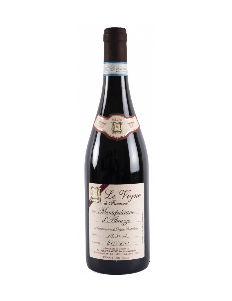 Gradazione Alcolica: 13,5° % vol. Zona di produzione: Pianella-Pescara. Resa/ettaro: quintali 140 max. Vinificazione: Pigiatura soffice con allontanamento dei raspi. Successiva fermentazione in acciaio con macerazione delle Uve per circa 15 giorni con controllo della temperatura Intorno ai 25°C. Dopo la fermentazione il vino viene lasciato maturare per Circa 6 mesi. Successivamente imbottigliato e fatto affinare in bottiglia. Aspetto: rosso intenso con riflessi violacei. Olfatto: Profumi di frutta rossa matura con note di ciliegia, ribes e viola. Palato: Sapore pieno intenso e persistente, molto armonico. Temperatura di servizio: 16°/18°C. Abbinamenti: Primi al ragù, carni rosse alla brace, salami e formaggi freschi e stagionati.