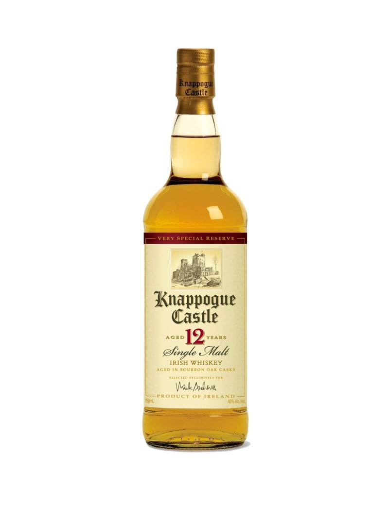 Il Castello di Knappogue venne costruito nel 1497 dal clan dei Macnamara nella contea di Clare. Ha una lunga storia alle spalle fatta di battaglie e grandi personaggi, divenne celebre dimora di diversi clan Irlandesi come gli Scotts o Lord Dunboyne che lo acquistò nel 1855. Nel 20° secolo il castello venne utilizzato come quartier generale dell’Irish State Army, l’esercito di liberazione irlandese che vinse la guerra contro gli inglesi. Knappogue in Gaelico significa “la collina del bacio”. E' un Single Malt Irish Whiskey distillato in modo tradizionale, pot still, con i tre passaggi in alambicco discontinuo di rame come da tradizione irlandese. Il distillato passa almeno 12 anni in botti ex-bourbon prima di venire imbottigliato.