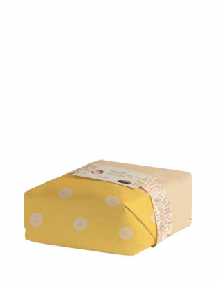 Colomba con canditi d’ananas e albicocca ricoperta di glassa e pistacchi, incartata a mano.