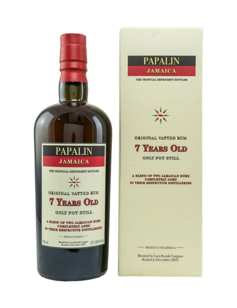 Papalin Jamaica 7 anni è un blend di Worthy Park per l’80%, Hampden maturato in botti ex-bourbon per il 10% e Hampden maturato in botti ex-sherry per il 10%. 10%). Tutto distillato in alambicchi discontinui e imbottigliato al grado di 57,18%.