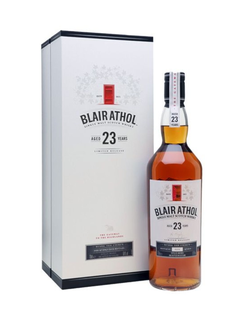 Il Blair Athol 23 Years Old è un single malt Scotch whisky invecchiato per 23 anni in particolari botti di rovere Europea che prima di essere riempite con questo single malt sono state completamente rivitalizzate con una nuova tostatura e riempite con vino fortificato della Gran Bretagna.